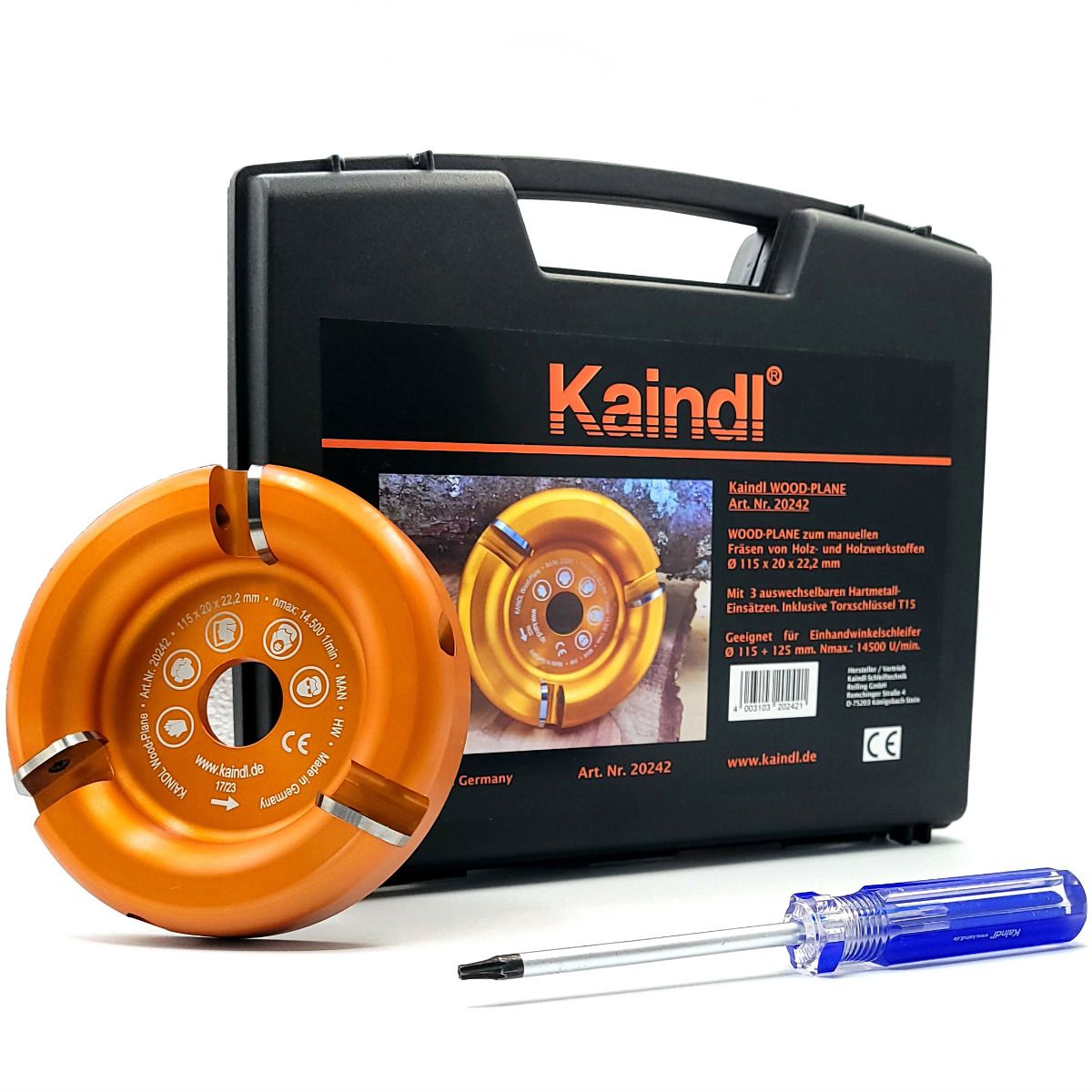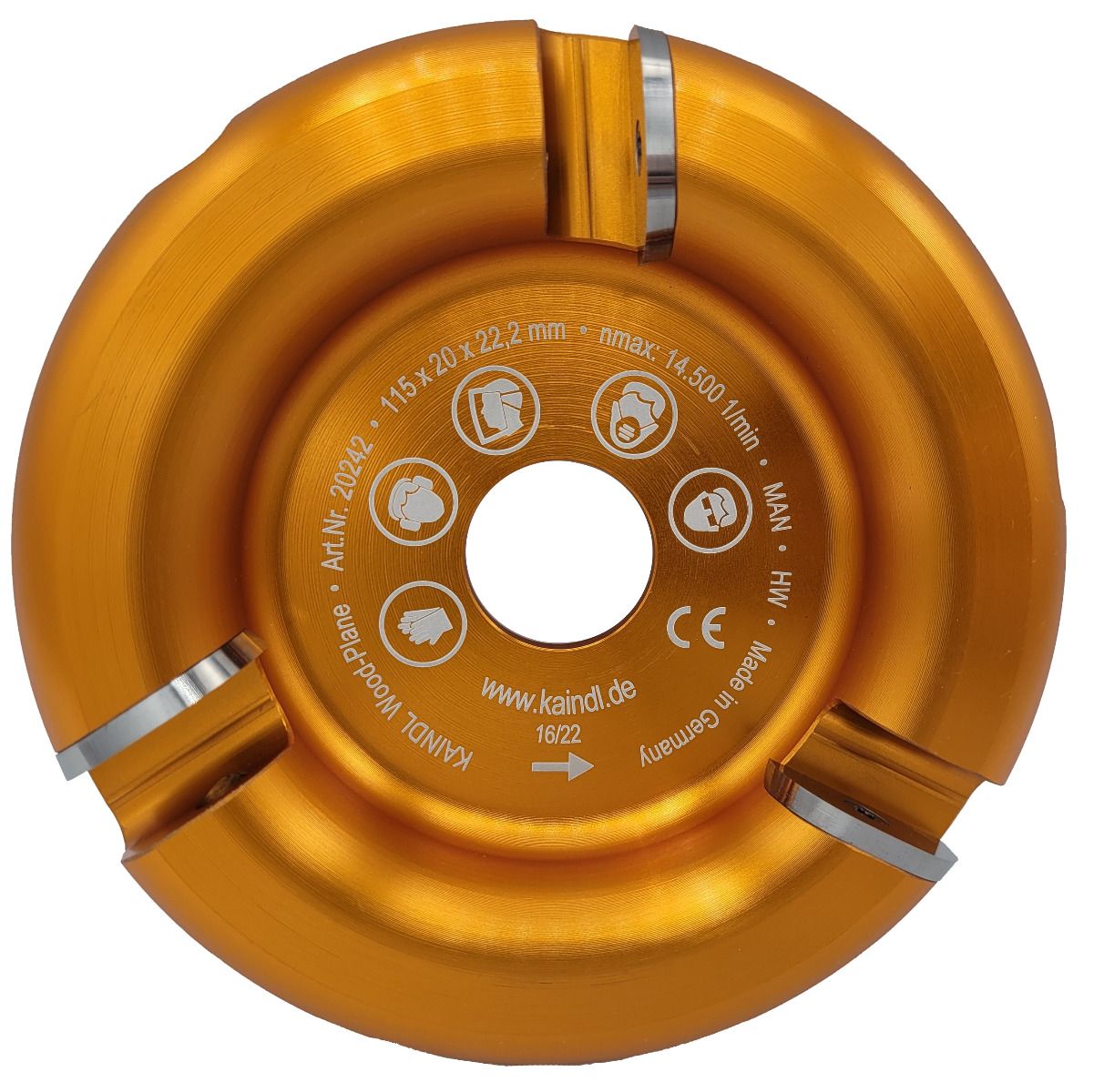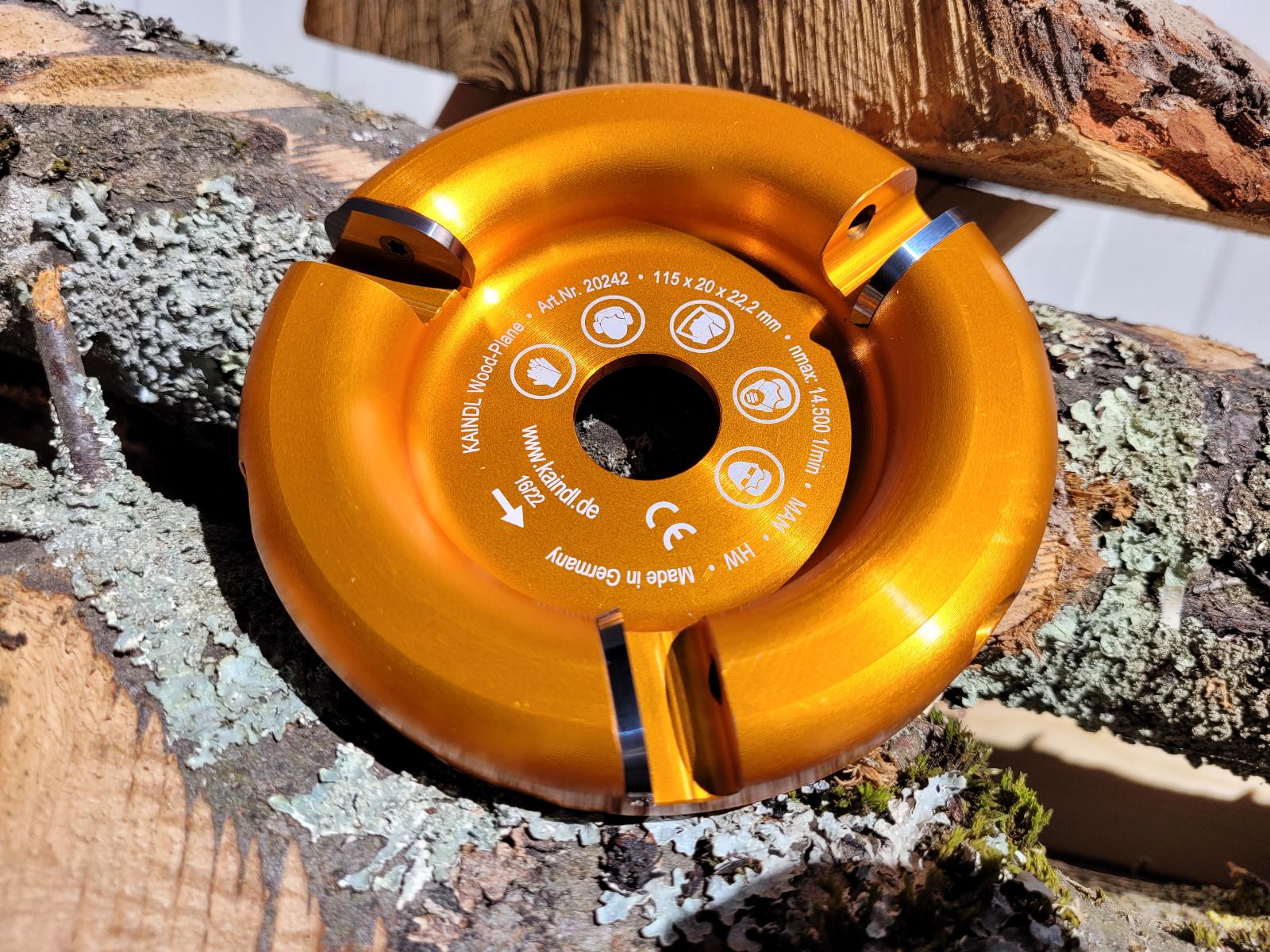 Disc frezare lemn WOOD-PLANE Kaindl, 115 × 20 × 22.2 mm, cu 3 plăcuțe HW și corp CNC din aluminiu. Ideal pentru degroșare rapidă, modelare și sculptură pe lemn moale și tare. Compatibil cu polizoare 115–125 mm. Distribuit exclusiv în România de RAM MULTI INVEST.